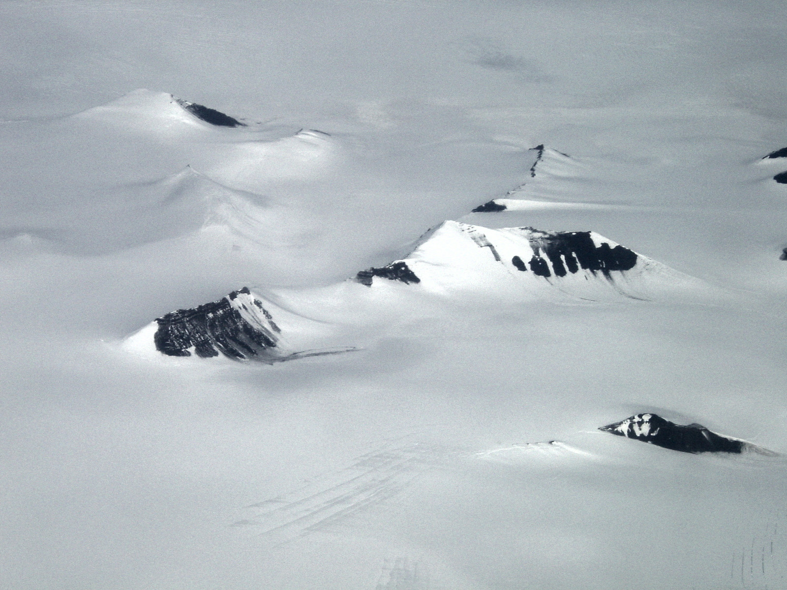 Aretes sortant de la mer de neige et glace recouvrant le Groenland.
